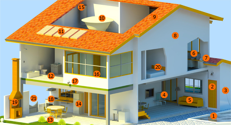 Clique nos números da casa para ver a descrição de cada serviço.